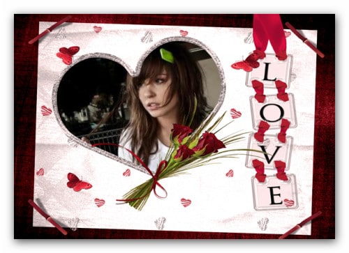 Marco de corazón con la palabra LOVE